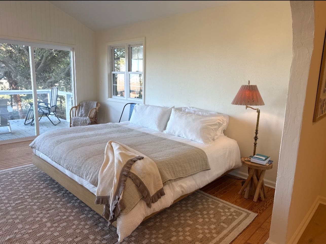 KEY FEATURES: ☀ Sleeps 7; 3 bedrooms with 2 king beds, 2 twin beds, and 1 pullout sofa bed ☀ 2 full bathrooms ☀ Outdoor theater with projector and outdoor seating ☀ Breathtaking ocean and marsh views ☀ Games (cornhole, board games, puzzles) ☀ Fully stocked kitchen ☀ In-unit washer and dryer ☀ Plenty of free parking around the house ☀ 7-10 minute drive to public beaches (Litchfield and 2nd street beaches) ☀ 5-10 minute drive to grocery stores, restaurants, and golf courses ☀ 7 minute drive to Huntington Beach State Park ☀ 20 minute drive to Brookgreen Gardens Here are a few kind words from our past guests: "My family and I had an outstanding stay with Moongaze Stays! The whole crew were extremely responsive either by text or phone to help with every question or issue. The location was gorgeous and very restful in both mind and body. We had a full moon during our stay, and watching it rise over the ocean and marsh was absolutely captivating! SO THEY LIVED UP TO THEIR NAME: Moongaze Stays. You all did an outstanding job of hosting us. We haven't been to the beach in 13 years, and this stay made us want to return more frequently, especially if Pelican's Perch is available. And with that, a big shout out and thank you to all the folks at Moongaze Stays!!!" - Michael "Our family of 5 enjoyed our stay at the Pelican Perch for a week. It was such a beautiful and peaceful location. Very clean, well stocked and comfortable. The host was extremely responsive and accommodating. We will be back!" - Nataley "Pelican's Perch was a great place in a beautiful location and with a wonderful view overlooking the marsh to the ocean! The apartment was comfortable and stylish with plenty of room and all the amenities listed! The hosts were quick to respond and gave all the necessary info and some extra hospitality to make our stay enjoyable!!" - Susan "I’d give this place 10 stars if able. Beautiful views, great amenities, private property with tons of yard space to spread out and walk around while looking at the beach. I’ve stayed in Airbnbs all over the world and never had such a proactive and caring host." - Austin ☆☆ BEDROOMS ☆☆ Two bedrooms: One bedroom features a high-quality king bed with luxury sheets and bedding to ensure you have a peaceful sleep! The other bedroom houses two twin beds with high-quality sheets and bedding, as well as a 38” Roku TV. There is a third unit (with the deck view from the photos) that is an extra room with some games! While it is not a bedroom, you can access it and enjoy the marsh view from the deck! ☆☆ BATHROOM ☆☆ Two bathrooms with a shower, stocked with all the essentials you need for the duration of your stay. ☆☆ KITCHEN ☆☆ Enjoy a fully stocked kitchen with a coffee maker, cookware, dinnerware, stove, oven, knives, microwave, air fryer, and toaster. ☆☆ LIVING ROOM ☆☆ Use our 50” Roku TV to watch your favorite movies and TV shows (you will need to log in to your Netflix/Hulu/Disney+ account) or enjoy a puzzle or board game with the group! ☆☆ OUTDOOR AREA ☆☆ Step outside and enjoy the beach air! If you love games, you’ll also be able to play cornhole with friends and family! To minimize salt damage and exposure to environmental conditions, the screen and projector is placed indoors. However, it can be easily set up outside for movie night! ☆☆ LAUNDRY ☆☆ The washer and dryer are located in the shared area between the two units if you'd like to do laundry during your stay. ☆☆ PARKING ☆☆ Free parking is available as there is plenty of space for cars around the house and in the driveway. ★☆ Book today and let us take care of you in Pawley’s Island! ☆★